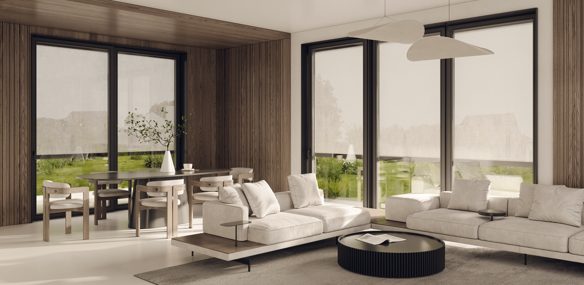 Внешняя солнцезащита — это инструмент, который позволяет не отказываться от панорамного остекления, не усложнять климатические решения и не жертвовать эстетикой фасада.